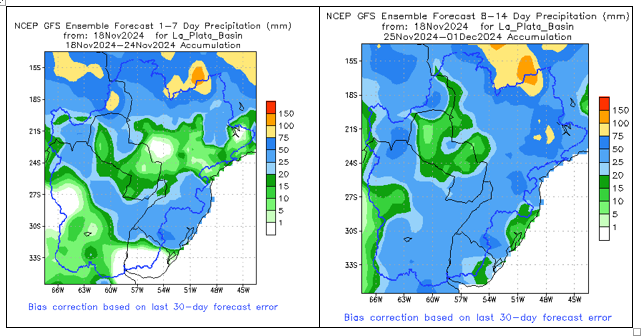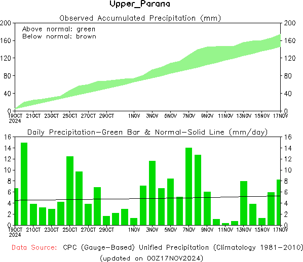 El pronóstico Hidrometeorológico del Centro Climático de referencia indica una tendencia semanal de leve significancia hidrológica en la cuenca de interés para la CHY con dispersión geográfica según sea la fuente consultada. (Ver gráfico Nro. 1).
