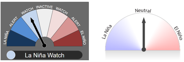 El fenómeno de El Niño-Oscilación del Sur (ENSO) es neutro, y tanto las temperaturas superficiales del mar (TSM) en el Océano Pacífico ecuatorial central como los patrones atmosféricos se encuentran en niveles neutros respecto de El Niño. Los índices atmosféricos, como los relacionados con los patrones de presión superficial, nubes y vientos alisios, son en general consistentes con un estado neutro respecto de El Niño. Aunque algunos han mostrado señales similares a las de La Niña durante las últimas semanas, estas señales no han sido consistentes.