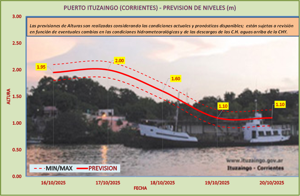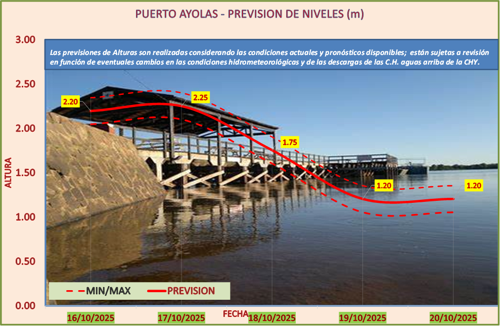 Las previsiones de Alturas son realizadas considerando las condiciones actuales y pronósticos disponibles y están sujetas a revisión en función de eventuales cambios en las condiciones hidrometeorológicas y de las descargas de las C.H. aguas arriba de la CHY.