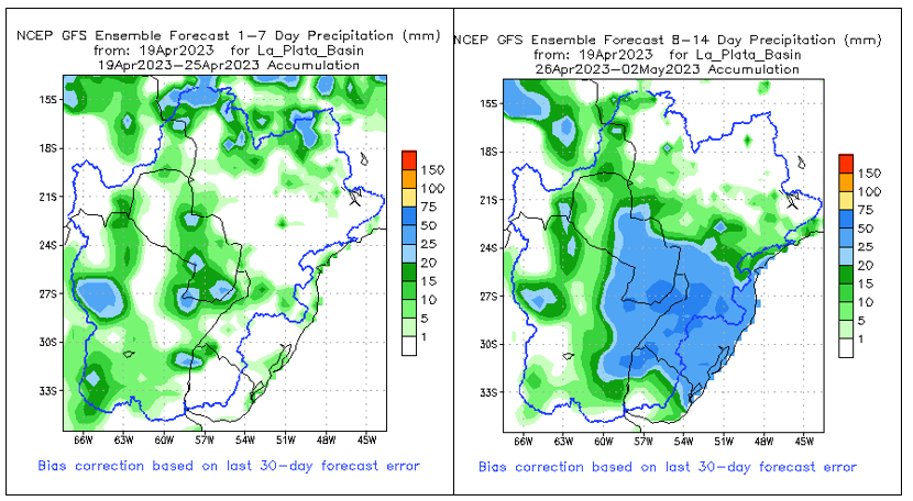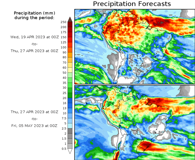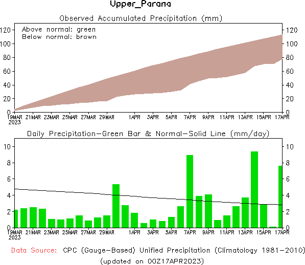 El pronóstico Hidrometeorológico del Centro Climático de referencia indica una tendencia semanal de poca significancia hidrológica en la cuenca de interés para la CHY con dispersión geográfica según sea la fuente consultada. (Ver gráfico Nro. 1).
