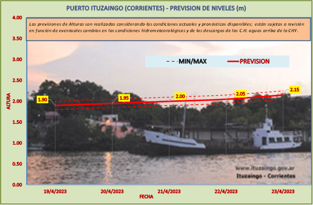 Las previsiones de Alturas son realizadas considerando las condiciones actuales y pronósticos disponibles y están sujetas a revisión en función de eventuales cambios en las condiciones hidrometeorológicas y de las descargas de las C.H. aguas arriba de la CHY.