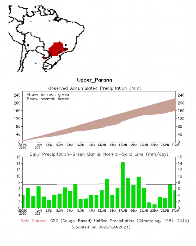 En el Puerto de Ayolas se registró una altura de 2.20 m (29/01/21 de la hora 03:00).