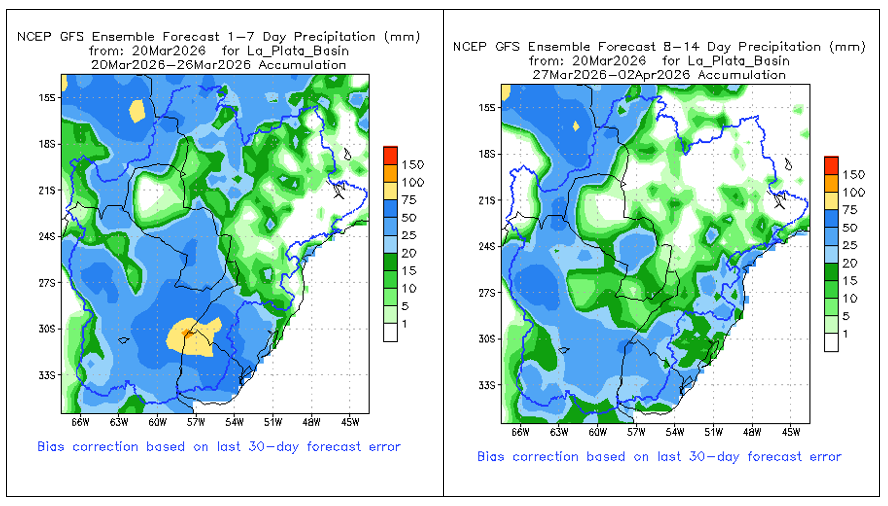 • El índice del Modo Anular del Sur (SAM, por sus siglas en inglés) se mantiene neutral al 14 de marzo de 2026. Se prevé que permanezca mayoritariamente neutral durante las próximas dos semanas.
