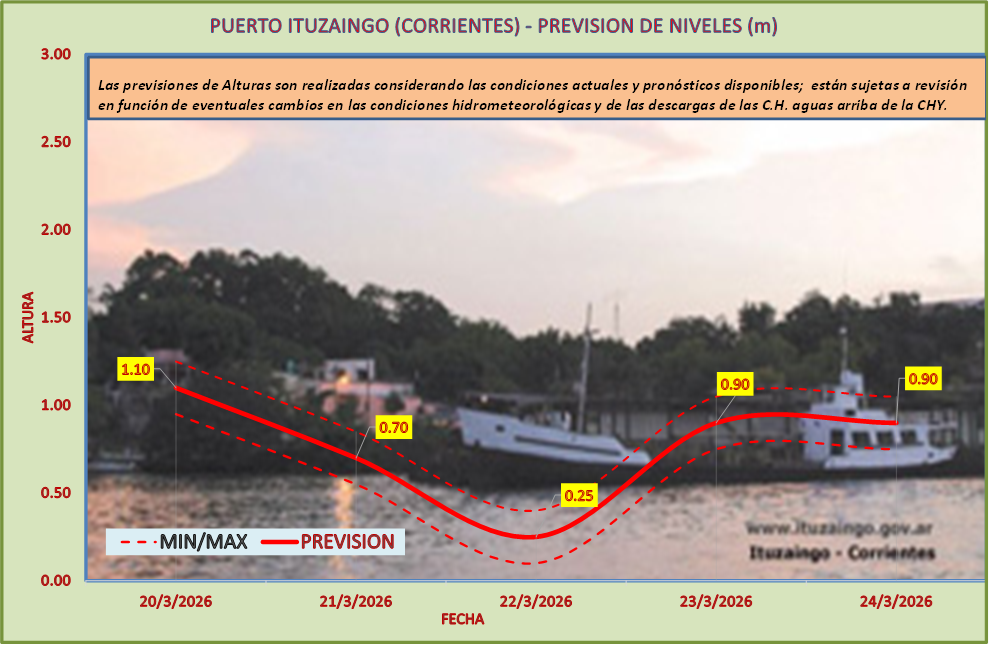 Las previsiones de Alturas son realizadas considerando las condiciones actuales y pronósticos disponibles y están sujetas a revisión en función de eventuales cambios en las condiciones hidrometeorológicas y de las descargas de las C.H. aguas arriba de la CHY.