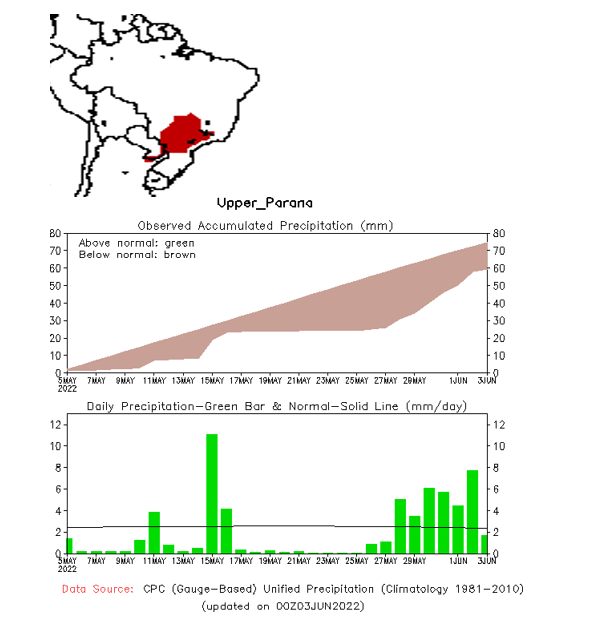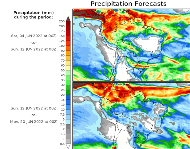 El pronóstico Hidrometeorológico del Centro Climático de referencia indica una tendencia semanal de significancia hidrológica en la cuenca de interés para la CHY con dispersión geográfica según sea la fuente consultada. (Ver gráfico Nro. 1).