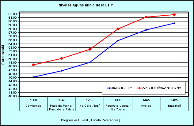 REFERENCIA: A modo de información – valores que originan riesgos de inundación en la zona de Ayolas.