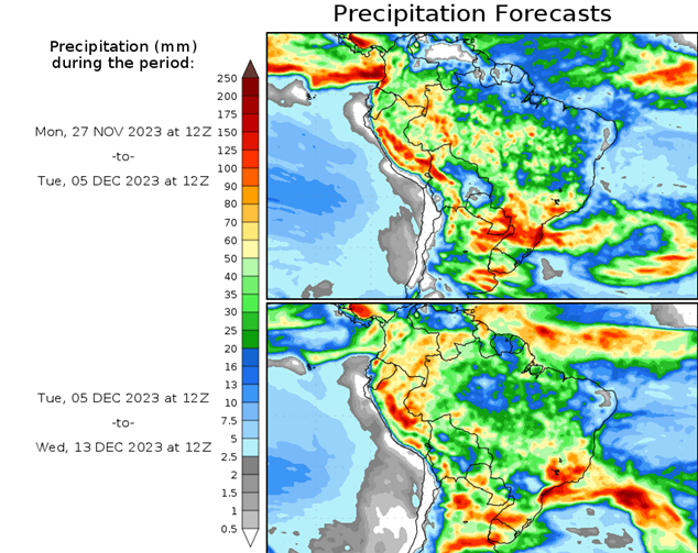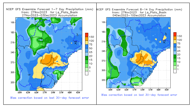 El pronóstico Hidrometeorológico del Centro Climático de referencia indica una tendencia semanal de significancia hidrológica en la cuenca de interés para la CHY con dispersión geográfica según sea la fuente consultada. (Ver gráfico Nro. 1).