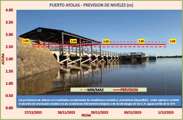Las previsiones de Alturas son realizadas considerando las condiciones actuales y pronósticos disponibles y están sujetas a revisión en función de eventuales cambios en las condiciones hidrometeorológicas y de las descargas de las C.H. aguas arriba de la CHY.
