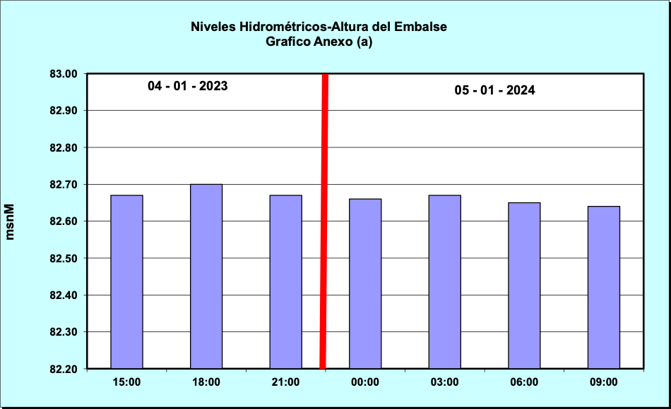 Nivel de Ayer (06:00 hs) = 82.74 mSNM Nivel de Hoy (06:00 hs) = 82.64 mSNM