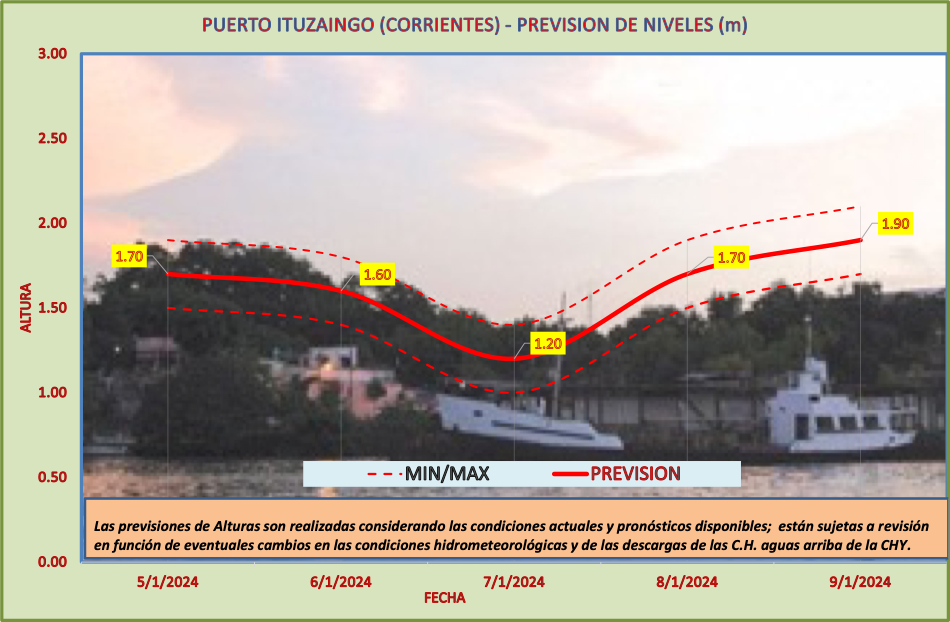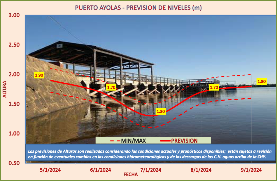 Las previsiones de Alturas son realizadas considerando las condiciones actuales y pronósticos disponibles y están sujetas a revisión en función de eventuales cambios en las condiciones hidrometeorológicas y de las descargas de las C.H. aguas arriba de la CHY.
