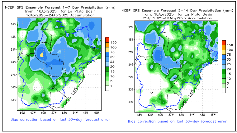 El pronóstico Hidrometeorológico del Centro Climático de referencia indica una tendencia semanal de poca significancia hidrológica en la cuenca de interés para la CHY con dispersión geográfica según sea la fuente consultada. (Ver gráfico Nro. 1).