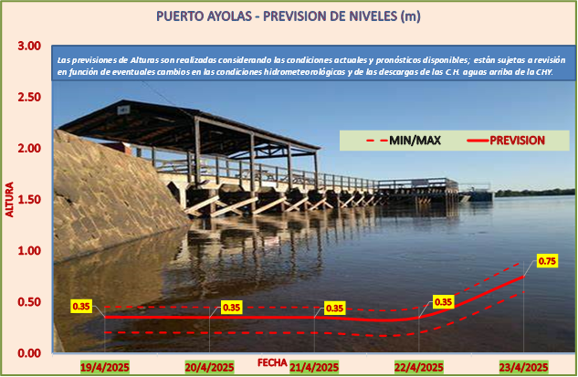 Las previsiones de Alturas son realizadas considerando las condiciones actuales y pronósticos disponibles y están sujetas a revisión en función de eventuales cambios en las condiciones hidrometeorológicas y de las descargas de las C.H. aguas arriba de la CHY.
