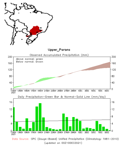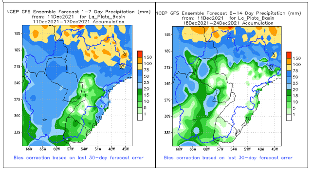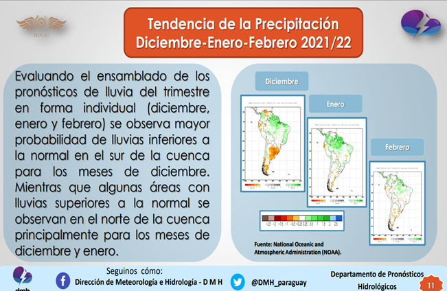 El pronóstico Hidrometeorológico del Centro Climático de referencia indica una tendencia semanal de poca significancia hidrológica en la cuenca de interés para la CHY con dispersión geográfica según sea la fuente consultada. (Ver gráfico Nro. 1).