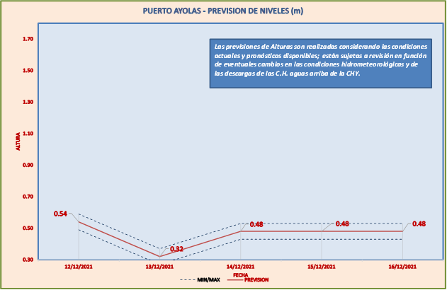 Las previsiones de Alturas son realizadas considerando las condiciones actuales y pronósticos disponibles y están sujetas a revisión en función de eventuales cambios en las condiciones hidrometeorológicas y de las descargas de las C.H. aguas arriba de la CHY.