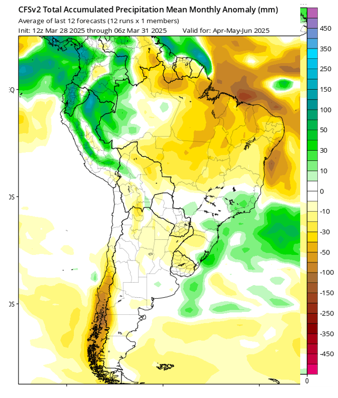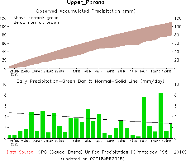 Para el trimestre considerado, se prevén valores infeiores a la normal en gran parte de la región oriental, mientras que en el resto del territorio nacional, se esperan condiciones normales.