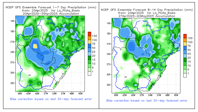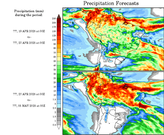 El pronóstico Hidrometeorológico del Centro Climático de referencia indica una tendencia semanal de poca significancia hidrológica en la cuenca de interés para la CHY con dispersión geográfica según sea la fuente consultada. (Ver gráfico Nro. 1).