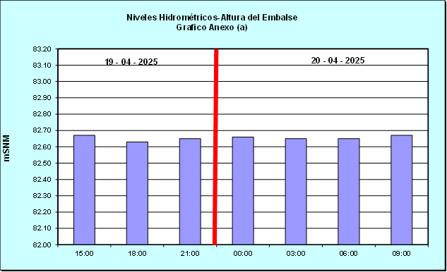 Nivel de Ayer (06:00 hs) = 82.64 mSNM Nivel de Hoy (06:00 hs) = 82.65 Msnm