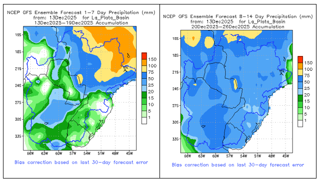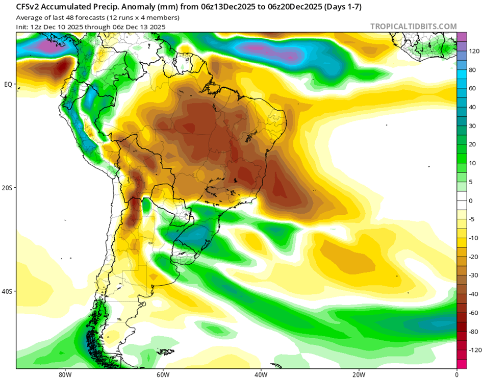 • El índice del Modo Anular del Sur (SAM) se mantiene neutral al 21 de noviembre de 2025. Se prevé que se torne negativo durante la próxima semana. Sin embargo, existe un amplio rango de posibles resultados, lo que indica una mayor incertidumbre hacia diciembre.