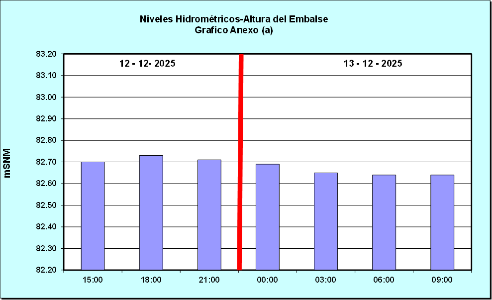 Nivel de Ayer (06:00 hs) = 82.78 mSNM Nivel de Hoy (06:00 hs) = 82.65 mSNM