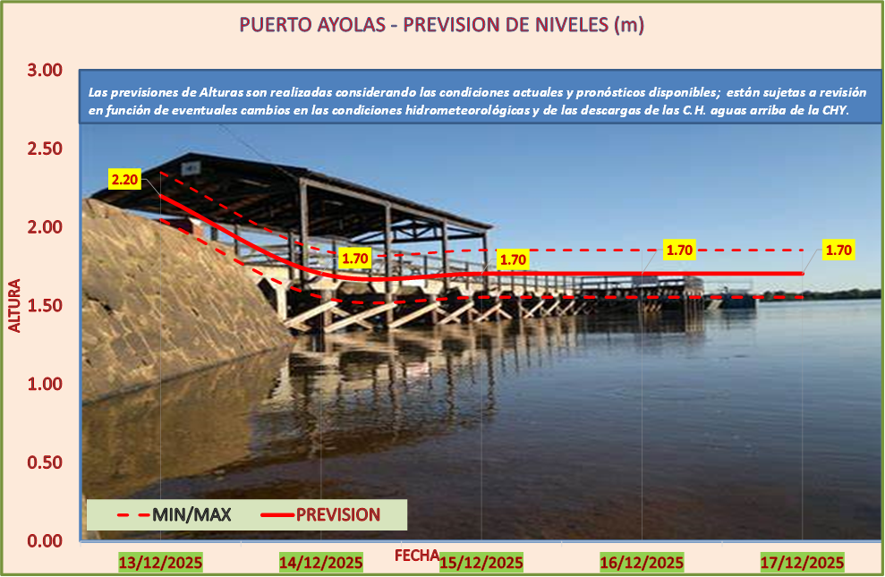 Las previsiones de Alturas son realizadas considerando las condiciones actuales y pronósticos disponibles y están sujetas a revisión en función de eventuales cambios en las condiciones hidrometeorológicas y de las descargas de las C.H. aguas arriba de la CHY.