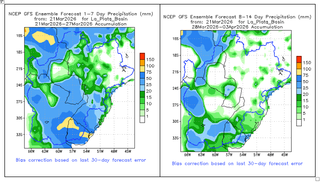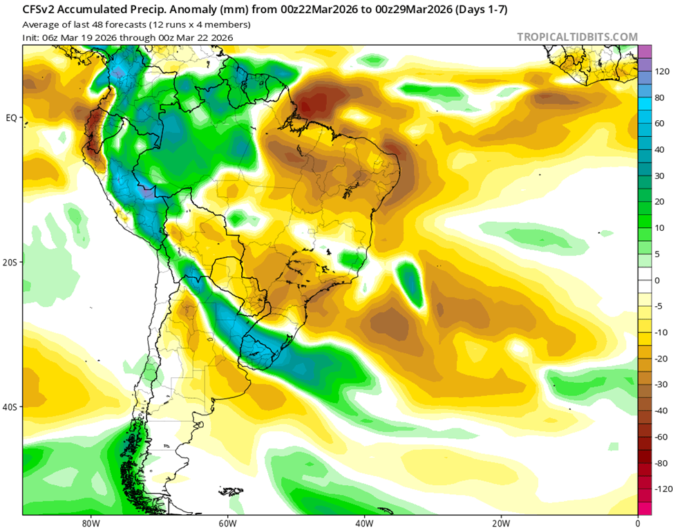 • El índice del Modo Anular del Sur (SAM, por sus siglas en inglés) se mantiene neutral al 14 de marzo de 2026. Se prevé que permanezca mayoritariamente neutral durante las próximas dos semanas.