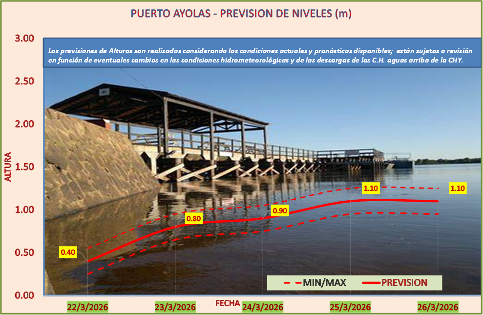 Las previsiones de Alturas son realizadas considerando las condiciones actuales y pronósticos disponibles y están sujetas a revisión en función de eventuales cambios en las condiciones hidrometeorológicas y de las descargas de las C.H. aguas arriba de la CHY.