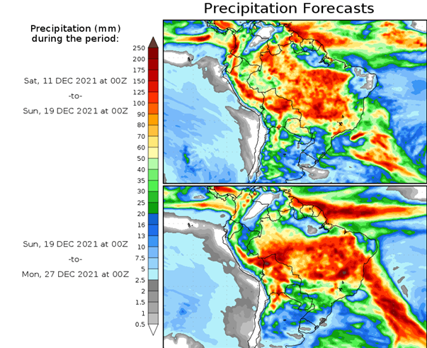 El pronóstico Hidrometeorológico del Centro Climático de referencia indica una tendencia semanal de poca significancia hidrológica en la cuenca de interés para la CHY con dispersión geográfica según sea la fuente consultada. (Ver gráfico Nro. 1).