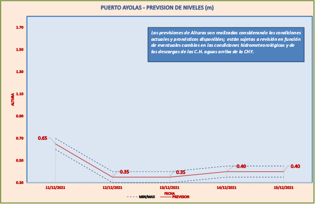 Las previsiones de Alturas son realizadas considerando las condiciones actuales y pronósticos disponibles y están sujetas a revisión en función de eventuales cambios en las condiciones hidrometeorológicas y de las descargas de las C.H. aguas arriba de la CHY.