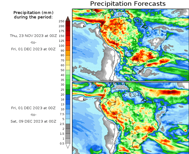 El pronóstico Hidrometeorológico del Centro Climático de referencia indica una tendencia semanal de significancia hidrológica en la cuenca de interés para la CHY con dispersión geográfica según sea la fuente consultada. (Ver gráfico Nro. 1).