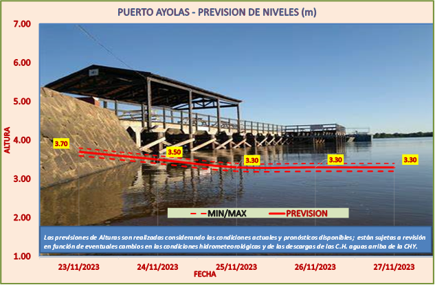 Las previsiones de Alturas son realizadas considerando las condiciones actuales y pronósticos disponibles y están sujetas a revisión en función de eventuales cambios en las condiciones hidrometeorológicas y de las descargas de las C.H. aguas arriba de la CHY.