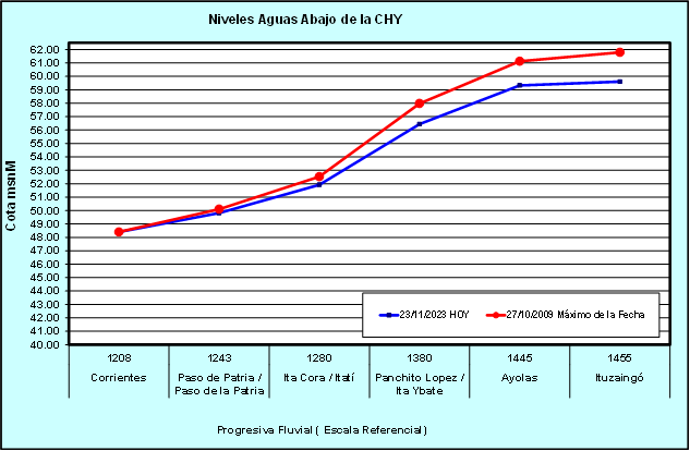 REFERENCIA: a modo de información – valores que originan riesgos de inundación en la zona de Ayolas.