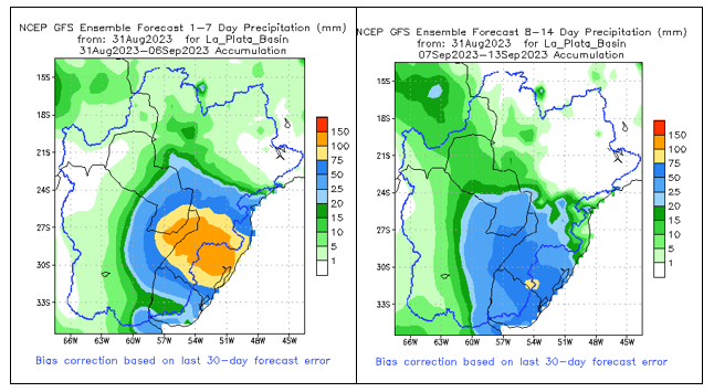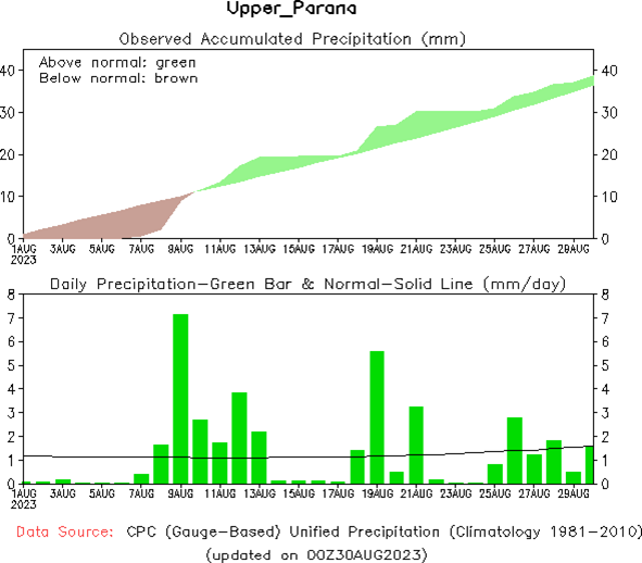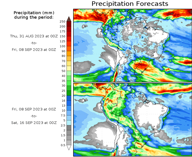 El pronóstico Hidrometeorológico del Centro Climático de referencia indica una tendencia semanal de poca significancia hidrológica en la cuenca de interés para la CHY con dispersión geográfica según sea la fuente consultada. (Ver gráfico Nro. 1).
