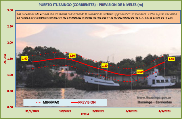 Las previsiones de Alturas son realizadas considerando las condiciones actuales y pronósticos disponibles y están sujetas a revisión en función de eventuales cambios en las condiciones hidrometeorológicas y de las descargas de las C.H. aguas arriba de la CHY.