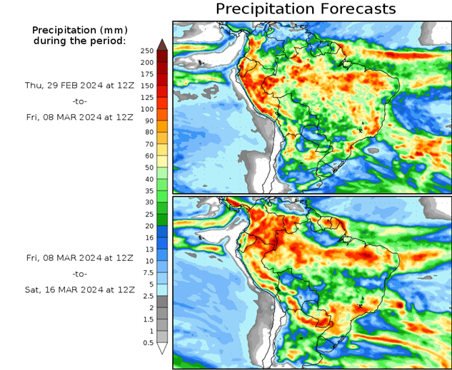 El pronóstico Hidrometeorológico del Centro Climático de referencia indica una tendencia semanal de poca significancia hidrológica en la cuenca de interés para la CHY con dispersión geográfica según sea la fuente consultada. (Ver gráfico Nro. 1).