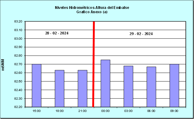 Nivel de Ayer (06:00 hs) = 82.74 mSNM Nivel de Hoy (06:00 hs) = 82.67 mSNM