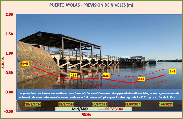 Las previsiones de Alturas son realizadas considerando las condiciones actuales y pronósticos disponibles y están sujetas a revisión en función de eventuales cambios en las condiciones hidrometeorológicas y de las descargas de las C.H. aguas arriba de la CHY.