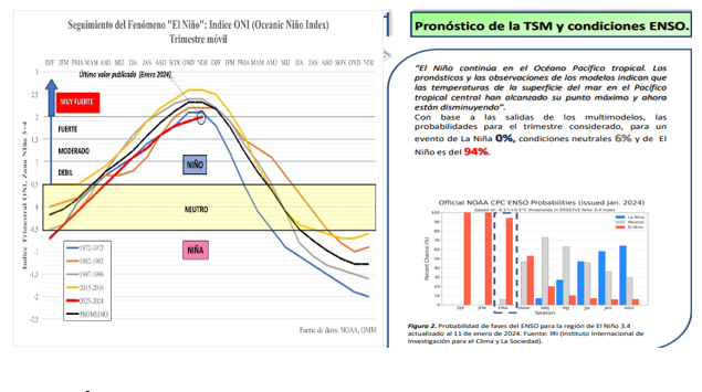 La evolución de índices climáticos publicados por organismos especializados de referencia, vinculados con la previsión del fenómeno caracterizado como “El Niño”, hace prever con un grado de probabilidad alto, que durante el periodo enero y marzo 2024 podrían verificarse eventos hidrológicos asociados a situaciones de aguas altas.