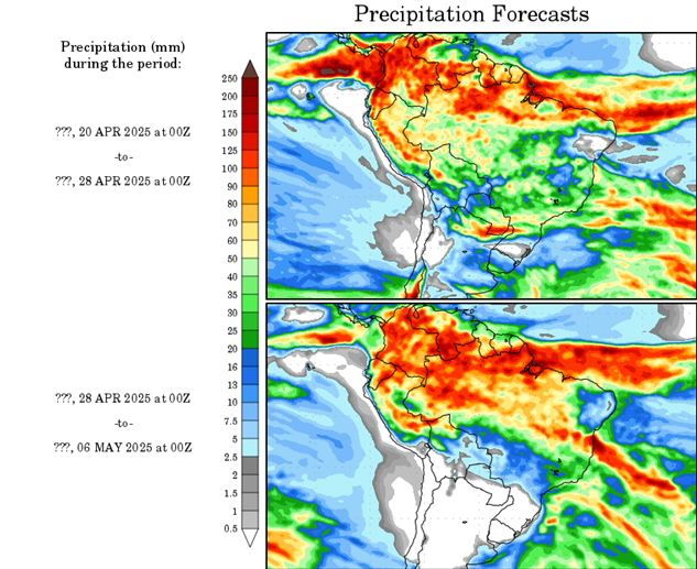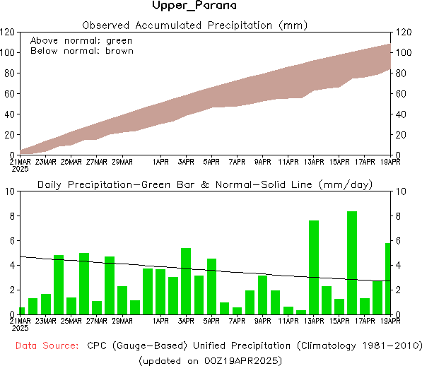 El pronóstico Hidrometeorológico del Centro Climático de referencia indica una tendencia semanal de poca significancia hidrológica en la cuenca de interés para la CHY con dispersión geográfica según sea la fuente consultada. (Ver gráfico Nro. 1).