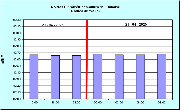 Nivel de Ayer (06:00 hs) = 82.65 mSNM Nivel de Hoy (06:00 hs) = 82.67 Msnm