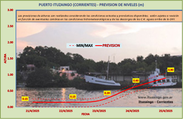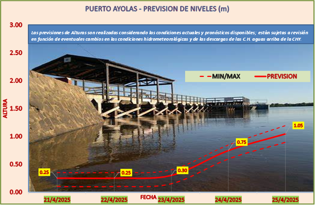 Las previsiones de Alturas son realizadas considerando las condiciones actuales y pronósticos disponibles y están sujetas a revisión en función de eventuales cambios en las condiciones hidrometeorológicas y de las descargas de las C.H. aguas arriba de la CHY.