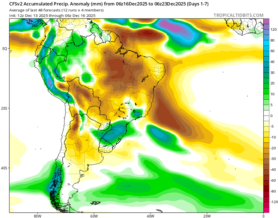 • El índice del Modo Anular del Sur (SAM) se mantiene neutral al 21 de noviembre de 2025. Se prevé que se torne negativo durante la próxima semana. Sin embargo, existe un amplio rango de posibles resultados, lo que indica una mayor incertidumbre hacia diciembre.
