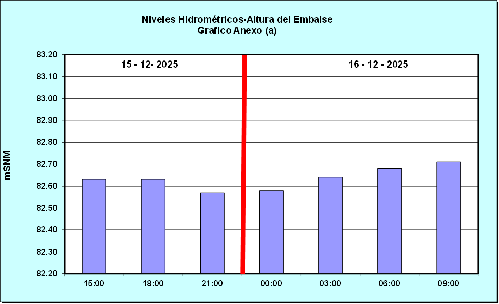 Nivel de Ayer (06:00 hs) = 82.70 mSNM Nivel de Hoy (06:00 hs) = 82.67 mSNM