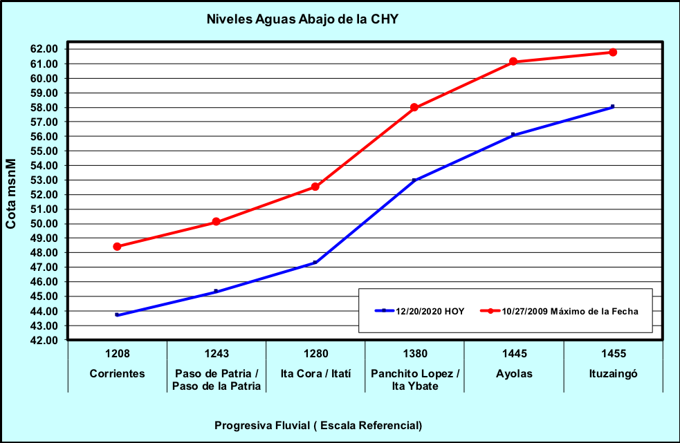 REFERENCIA: a modo de información – valores que originan riesgos de inundación en la zona de Ayolas.