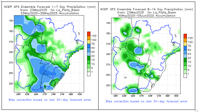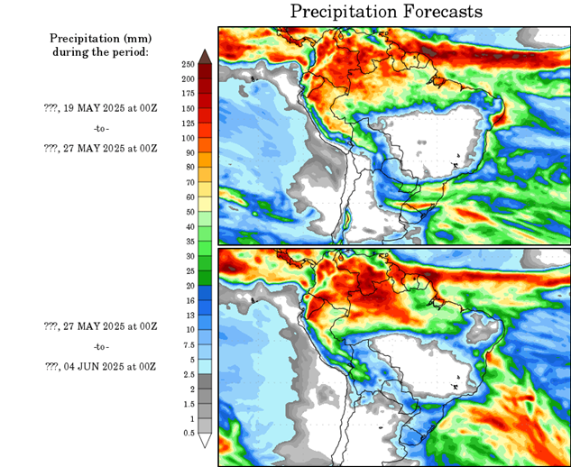 El fenómeno de El Niño-Oscilación del Sur (ENOS) es neutro. El último valor de Niño3.4 para la semana que finalizó el 4 de mayo fue de -0,03 °C. Los valores neutros de ENOS se encuentran entre -0,8 °C y +0,8 °C.