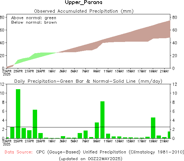 Para el trimestre considerado, se prevén valores infeiores a la normal en gran parte de la región oriental, mientras que en el resto del territorio nacional, se esperan condiciones normales.