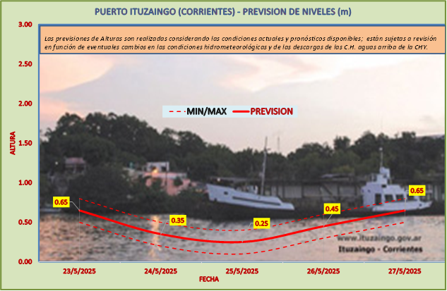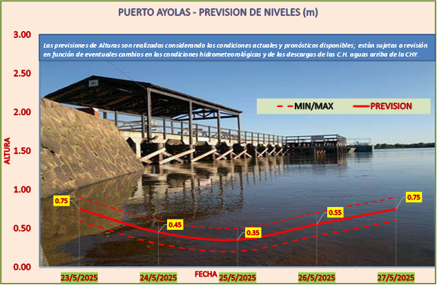 Las previsiones de Alturas son realizadas considerando las condiciones actuales y pronósticos disponibles y están sujetas a revisión en función de eventuales cambios en las condiciones hidrometeorológicas y de las descargas de las C.H. aguas arriba de la CHY.