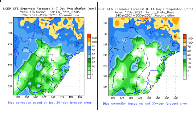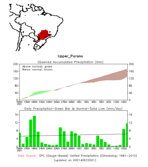 El pronóstico Hidrometeorológico del Centro Climático de referencia indica una tendencia semanal de poca significancia hidrológica en la cuenca de interés para la CHY con dispersión geográfica según sea la fuente consultada. (Ver gráfico Nro. 1).
