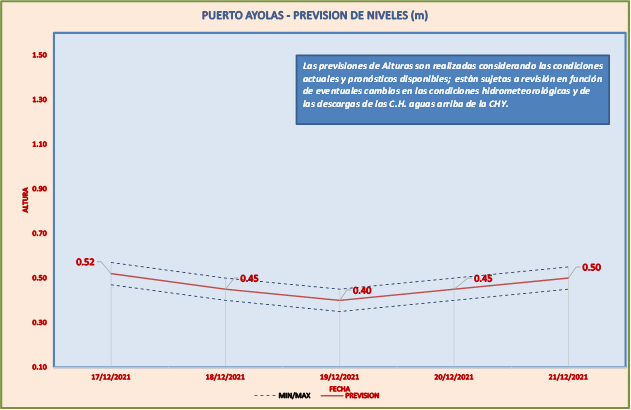 Las previsiones de Alturas son realizadas considerando las condiciones actuales y pronósticos disponibles y están sujetas a revisión en función de eventuales cambios en las condiciones hidrometeorológicas y de las descargas de las C.H. aguas arriba de la CHY.