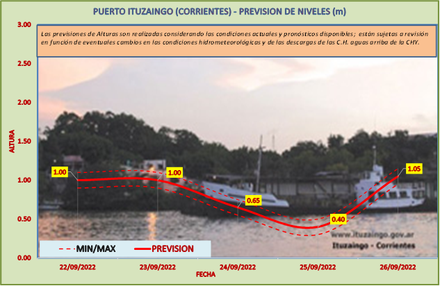 Las previsiones de Alturas son realizadas considerando las condiciones actuales y pronósticos disponibles y están sujetas a revisión en función de eventuales cambios en las condiciones hidrometeorológicas y de las descargas de las C.H. aguas arriba de la CHY.