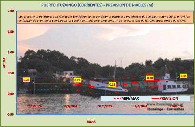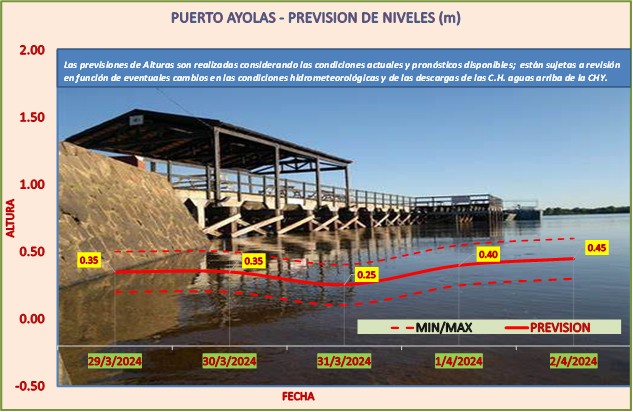 Las previsiones de Alturas son realizadas considerando las condiciones actuales y pronósticos disponibles y están sujetas a revisión en función de eventuales cambios en las condiciones hidrometeorológicas y de las descargas de las C.H. aguas arriba de la CHY.